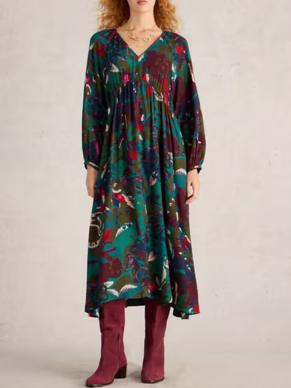 Midi Dress In Green Print 55220943