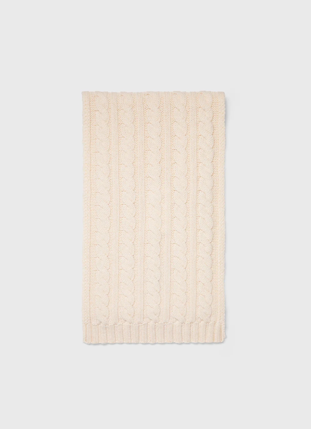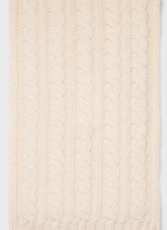 A luxurious cable knit scarf with a contemporary design and a wide rib trim. Wear with the matching cable hat for a perfect winter set.