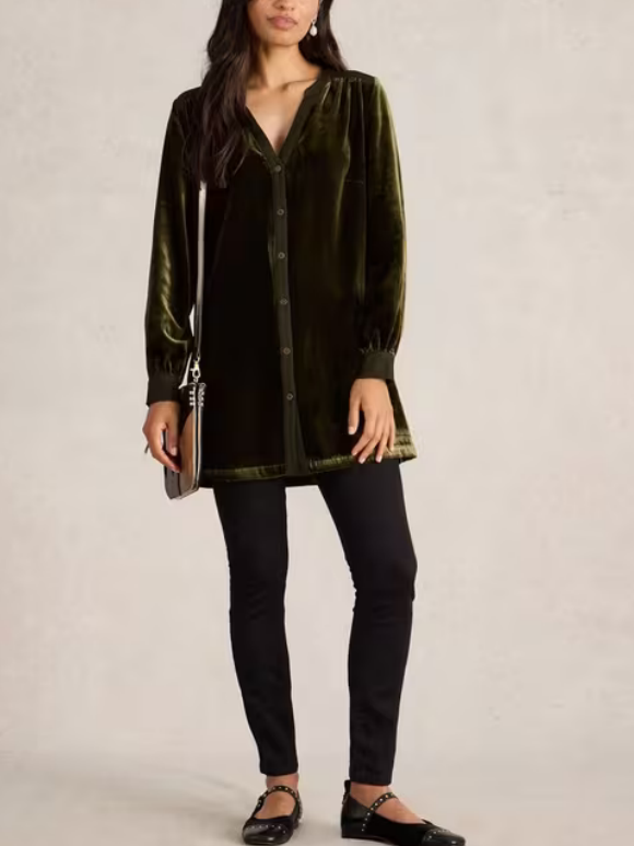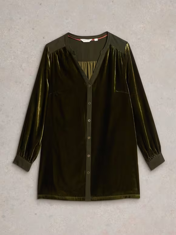 Long Sleeve Olive Velvet Tunic 55220259